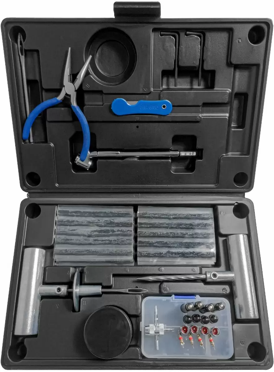 - 67-Piece Tire Repair Kit with Hard Storage Case