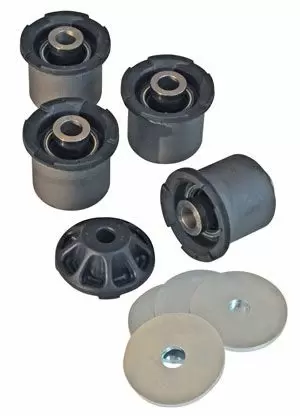 Upgrade your older SPC arms to the latest design with this complete bushing retrofit kit. These xAxis joints feature free pivoting inner balls to maximize droop travel and are greased & booted to protect against contaminants. The bonded rubber outer shell is designed to maintain factory noise, vibration, and harshness (NVH) measurements. The kit includes four bushings, washers, and the press tool needed to install the new bushings in your arms. On a budget? We still sell our SpecRide bushing kit for these arms, see part number 25476.