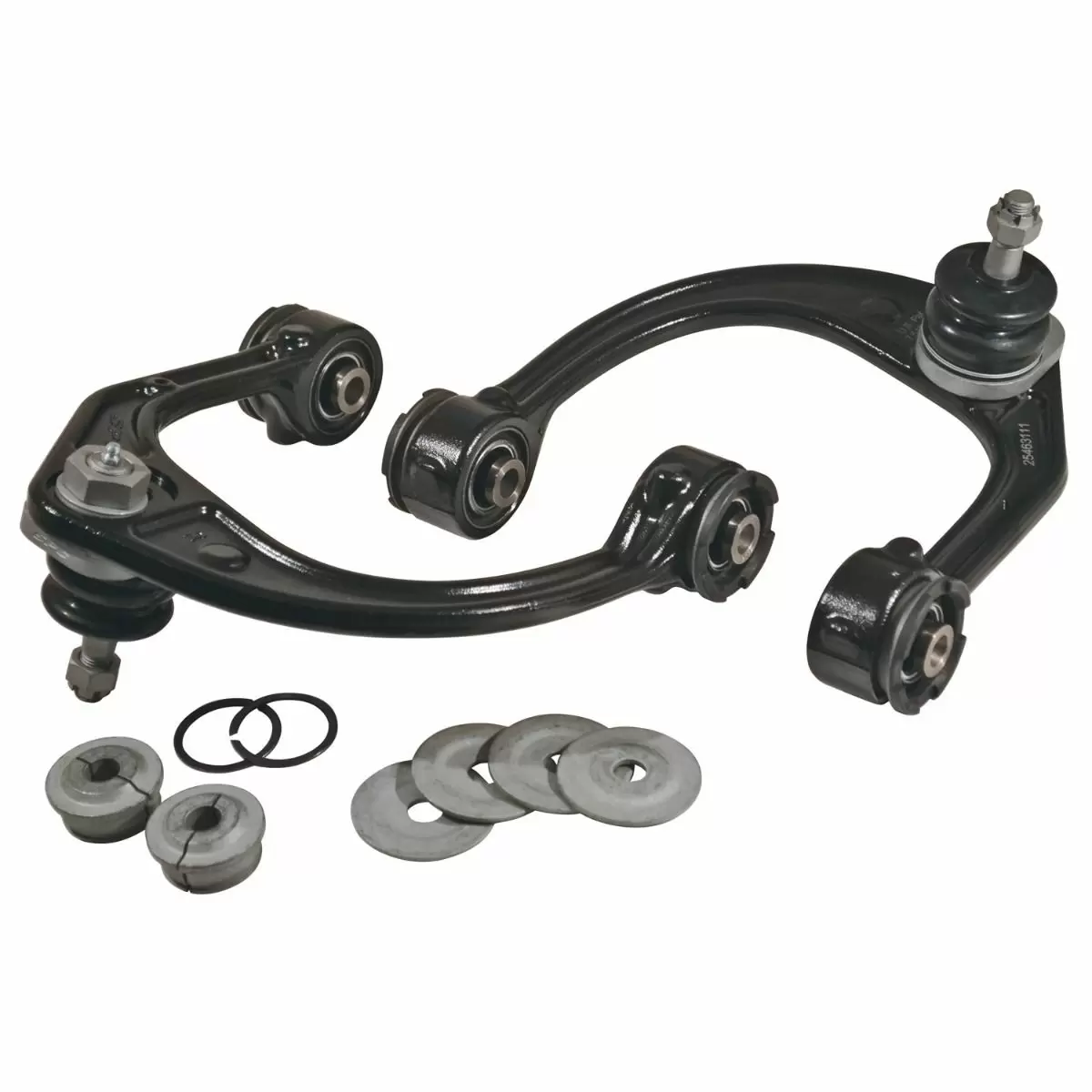 Designed, engineered, tested, and assembled in Colorado; SPC Performance’s adjustable upper control arms are loaded with the features you need. Improve suspension travel, handling, and tire wear while you center your tire in the wheel well to maximize clearance for your oversized tires. Equipped with greaseable ball joints and xAxis™ sealed flex joints in bonded rubber sleeves, this arm will both correct alignment angles and restore factory ride quality. SPC’s forged steel design provides the strength and durability needed for the most demanding environments. (Sold in pairs.)