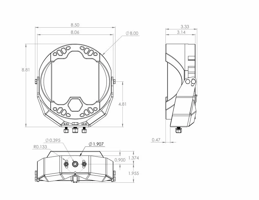 A design that was inspired by Baja Designs legendary 8 inch La Paz HID; The LP9 features modern styling and performance, with some of the most advanced LED technologies available today. The LP9 utilizes 9 forward projecting LEDS to produce 11,025 Lumens at 105 watts, and 6 LEDs for Integrated Peripheral Technology (IPT) which produce 1,140 lumens at 10.5 watts per side. The IPT provides an incredible 200 degree spread of usable light.