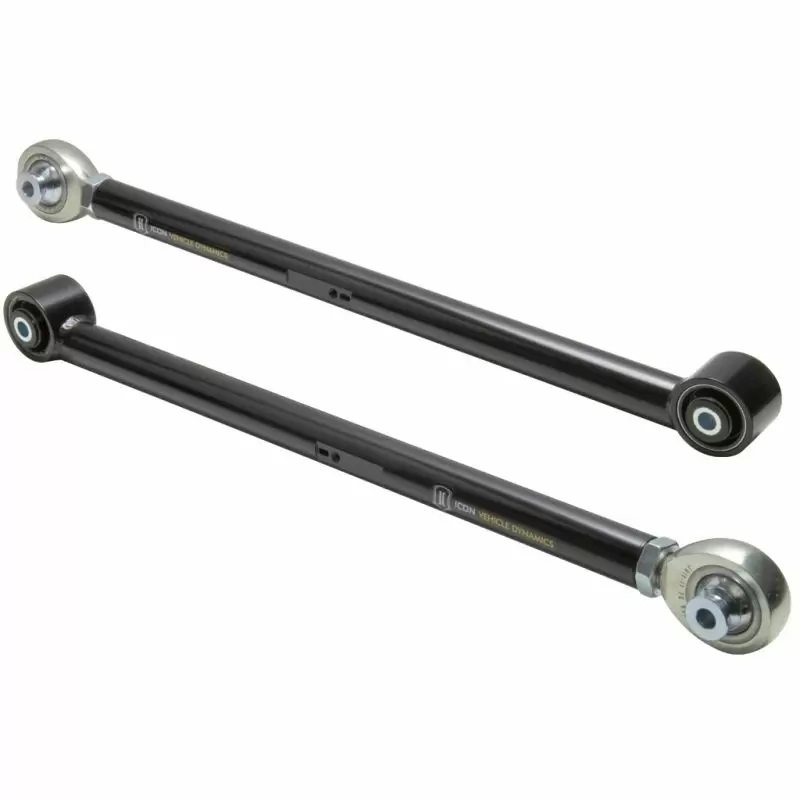 ICON’s tubular steel rear lower link arms are a significant upgrade over the factory units due to increases in strength, adjustability, and performance. These components are made from CNC machined and notched 1026 DOM steel and welded in-house, providing a major improvement over the construction of the stock units. This rear lower link arm kit features PTFE-lined FK rod ends for increased suspension articulation, reduced deflection, and link arm length adjustability and also utilize a multi durometer bushing that allows for noise free operation and maximum angularity without the need for periodic greasing and/or other maintenance.