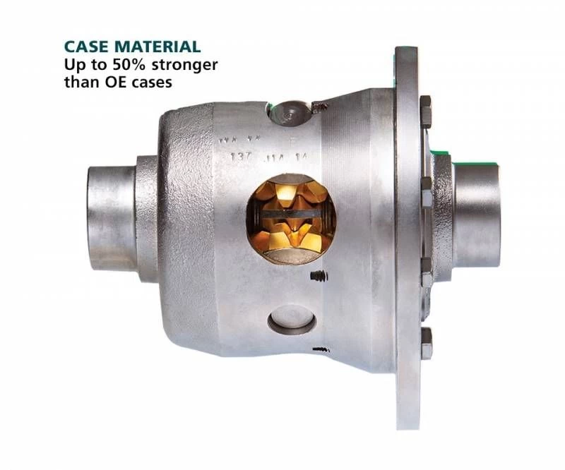 - High strength bevel gearing that provides greater resistance to shock loading as compared to helical gear limited-slip designs.