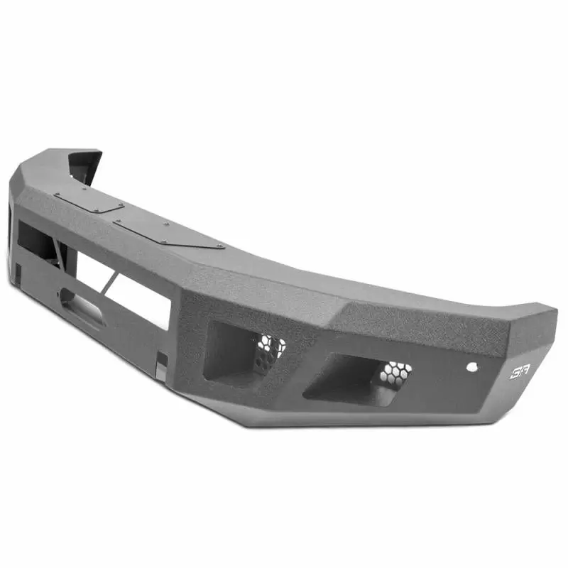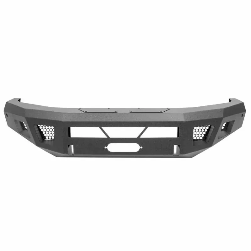 The new Eco Series bumper adds strength and protection as well as style. Body Armor have taken extra steps to include multiple pockets in the center of the bumper to insure maximum airflow in the intercooler for the ECO-Boost rigs. This bumper also includes multiple light mounting points. In the pockets at the ends of the bumper there are mounting points for two cube LED’s in each pocket. In the center there is the ability to run a 20″ single or dual row LED bar. Check out the Body Armor 4×4 3 series Cubes, 4 and six series dual row light bars and 5 series single row light bars. This bumper weighs in at 79 pounds so it will not bog down the suspension and gas mileage. Made from 3MM steel plate, and painted with dual process textured powder coat. Bolt on installation, no drilling, cutting or welding required.