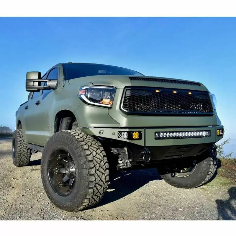 - Each side of the bumper has mounting brackets in the outer wing for two 3″ LED cube lights (4 total)