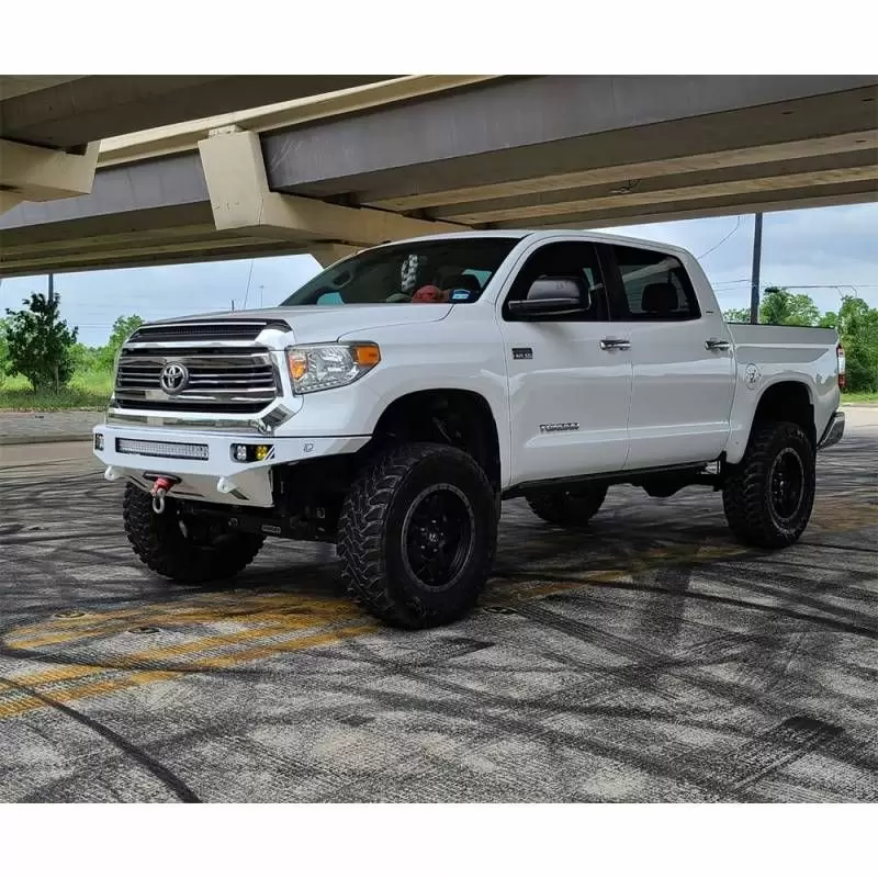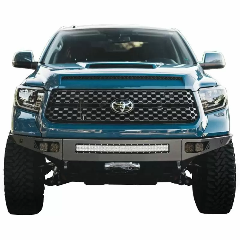 Included winch mount for up to a 12,000 lb winch that accepts most popular brand winches and fairleads. Design also allows winch free spool lever access. This bumper also includes two center section lighting options for the bumper you can either choose to install a 30″ curved or straight dual row LED Light bar or install eight 3″ LED cube lights. Both light mounting options are included in the bumper and the choice is yours which look you prefer to use. There is also two 3″ cube lights in each wing of the bumper, totaling four cube lights in the front bumper.