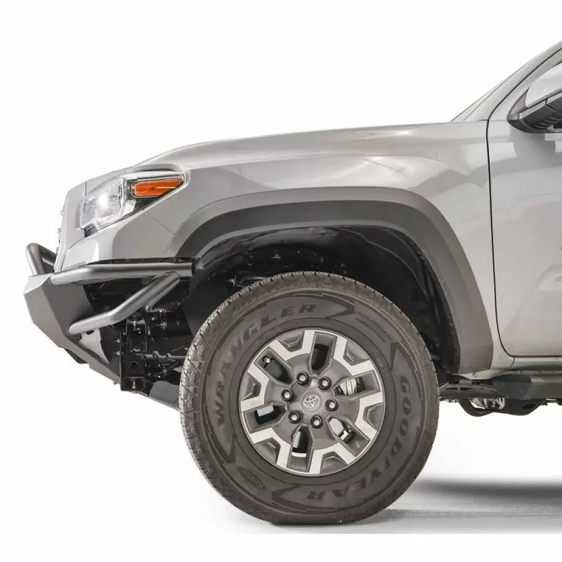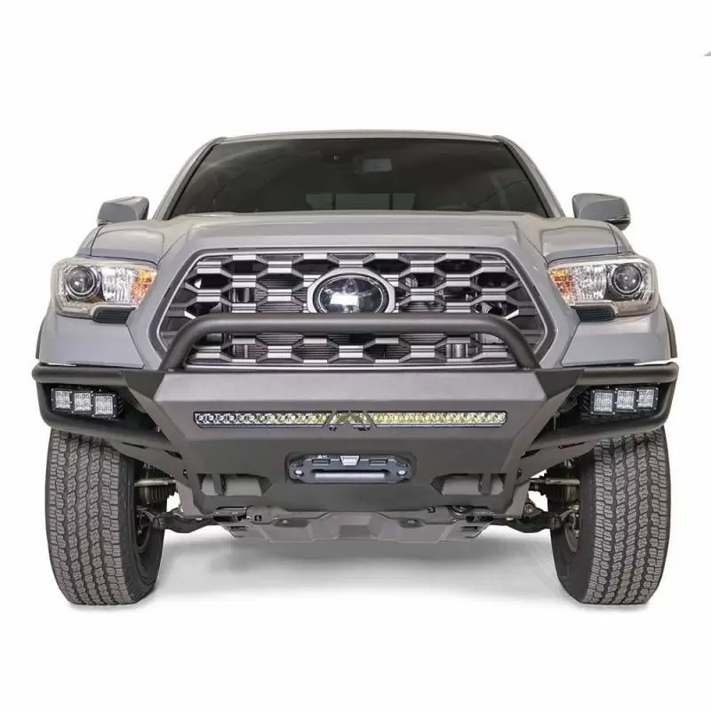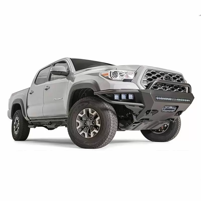 Fab Fours Ultra-Light Hybrid bumper for the 2016+ Toyota Tacoma. The combination of tube and plate steel construction allows for a lightweight and extremely durable front winch bumper. Works with Toyota safety sense technology.