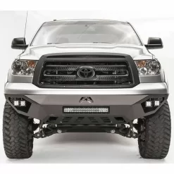 The Fab Fours new line of light weight bumpers: Vengeance Series. These premium steel sensor bumpers are engineered to be light weight and offer a sleek and stylish finish for both the front and rear of your vehicle. Integrated 20 inch LED light bar housing in the center and mounting options on each side for (2) 3″ LEDs to give you maximum LED light coverage. The fit of this bumper is high and tight and comes with lower cutouts to provide increased airflow while also giving you that aggressive look both on and off the road.