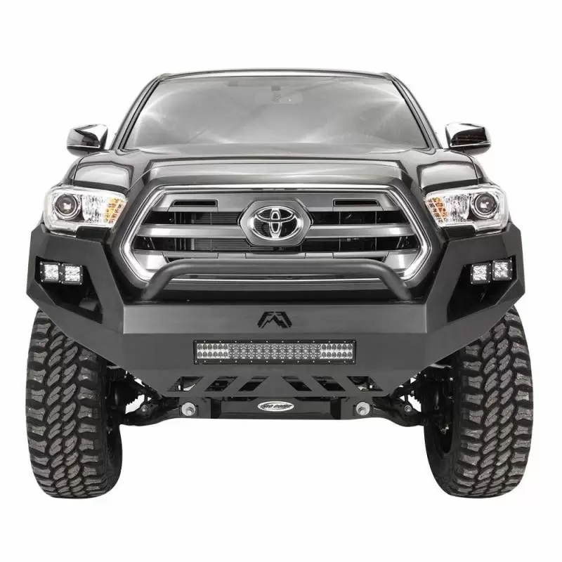 Fab Fours new line of light weight bumpers: Vengeance Series. These premium steel sensor bumpers are engineered to be light weight and offer a sleek and stylish finish for both the front and rear of your vehicle. Integrated 20inch LED light bar housing in the center and mounting options on each side for (2) 3Ô”3 LED to give you maximum led light coverage. The fit of this bumper is high and tight and comes with lower cutouts to provide increased airflow while also giving you that aggressive look both on and off the road.