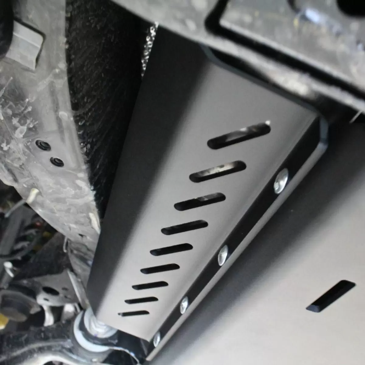 Underbody damage is costly. Protect your investment with the high quality transmission skid plate and catalytic guards by RCI Metalworks. Ties in seamlessly with RCI front and transfer-case skid plates and compatible with the Toyota TRD PRO engine skid plate.